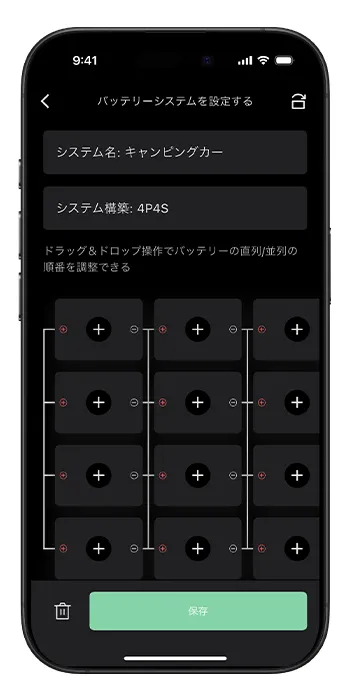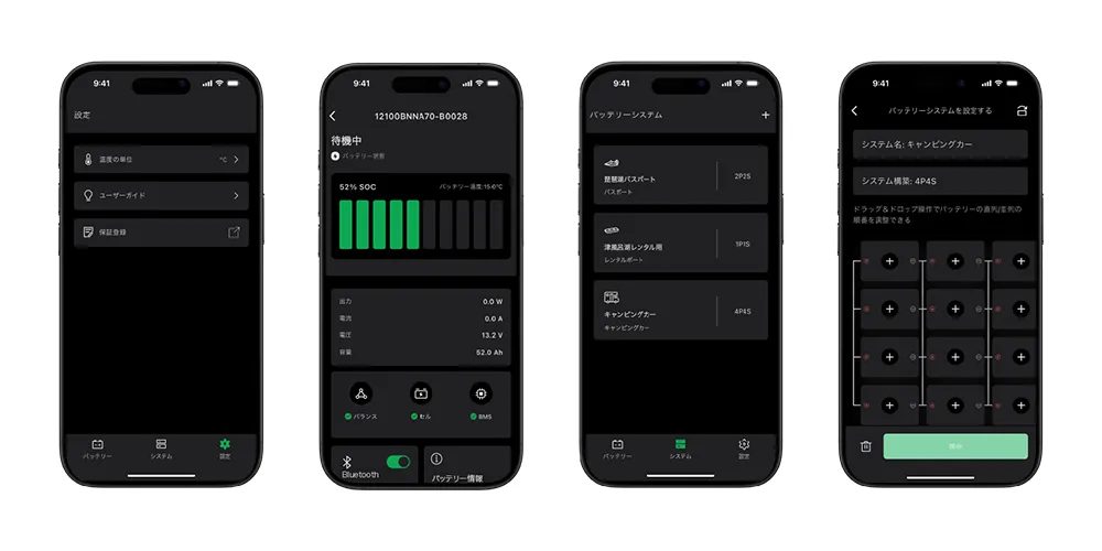バッテリー単体の管理も。複数バッテリーを一元管理。